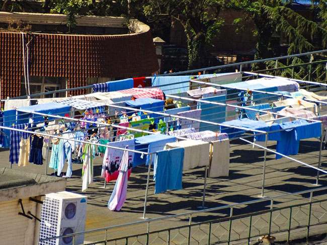 4.把衣服重洗一遍,并且放在太阳下晾晒。