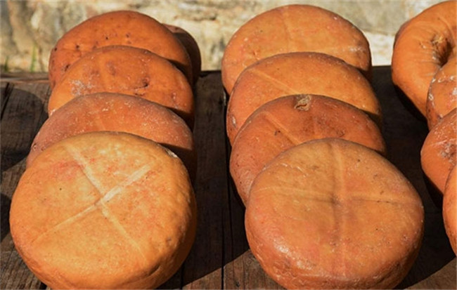 腊八豆腐是腊八前后,黟县家家户户都要晒制的豆腐,生活简朴的黟县人外出经商,作为菜肴可以吃上很长的时间。腊八豆腐是用小黄豆做成豆腐,中间挖洞放入食盐,在温和太阳下烤晒而成,使盐分慢慢吸收。