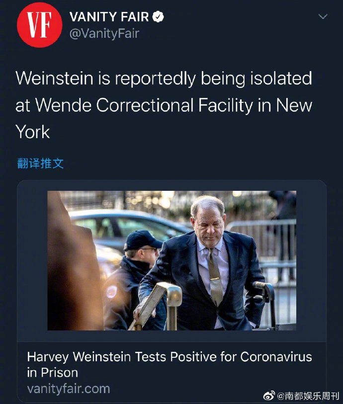 哈维韦恩斯坦感染新冠病毒 在监狱中被隔离